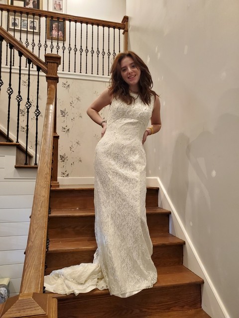 Most dress styles work well with lace material, from A-line to mermaid styles. However, lace material works best with vintage and delicate looks.